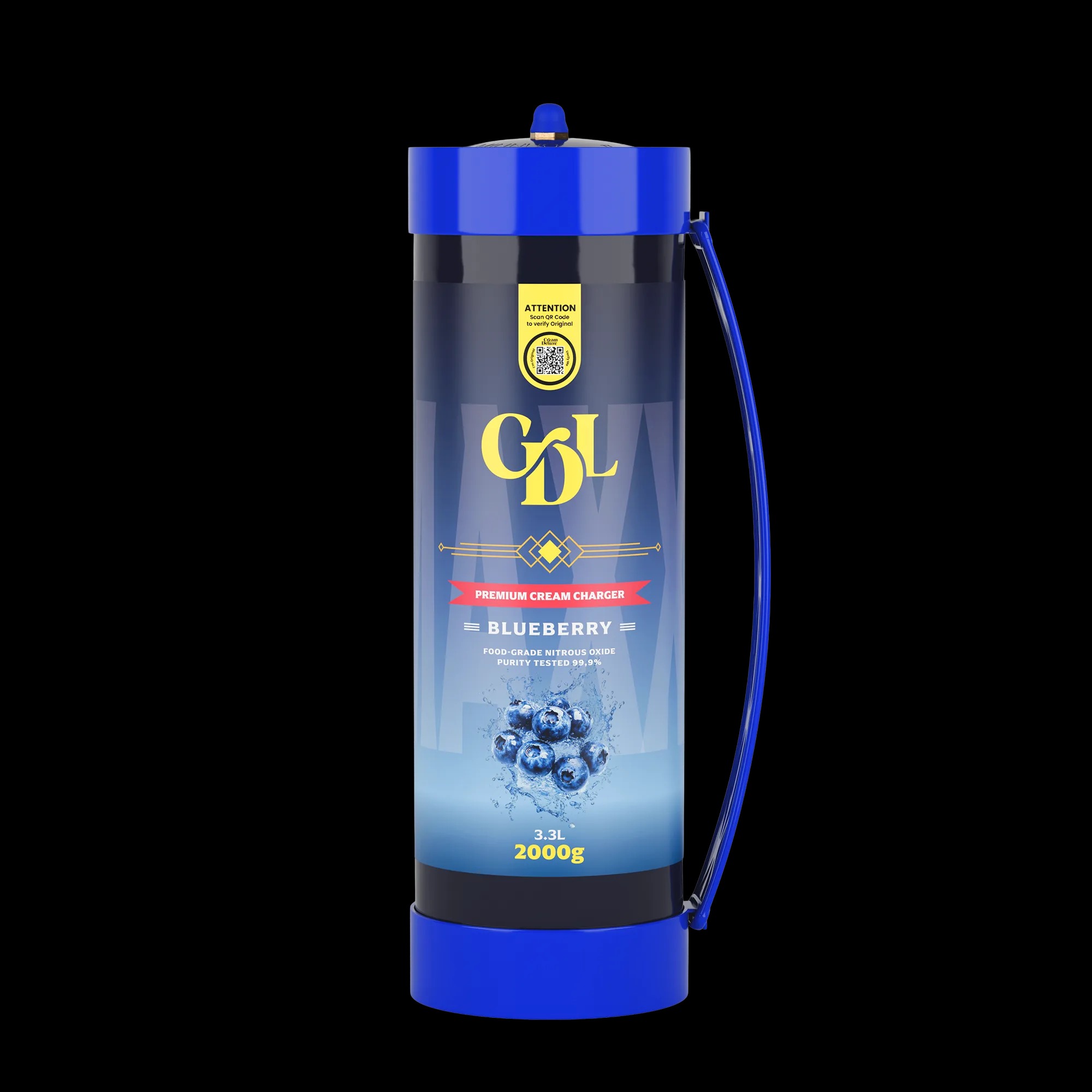 The introduction of the Cream Deluxe Blue berry marks the beginning of a new era of creativity and reliability. Designed for high performance, the cylinder contains 2000 grams of pure food-grade N2O , enclosed in reinforced steel for stability and quality.