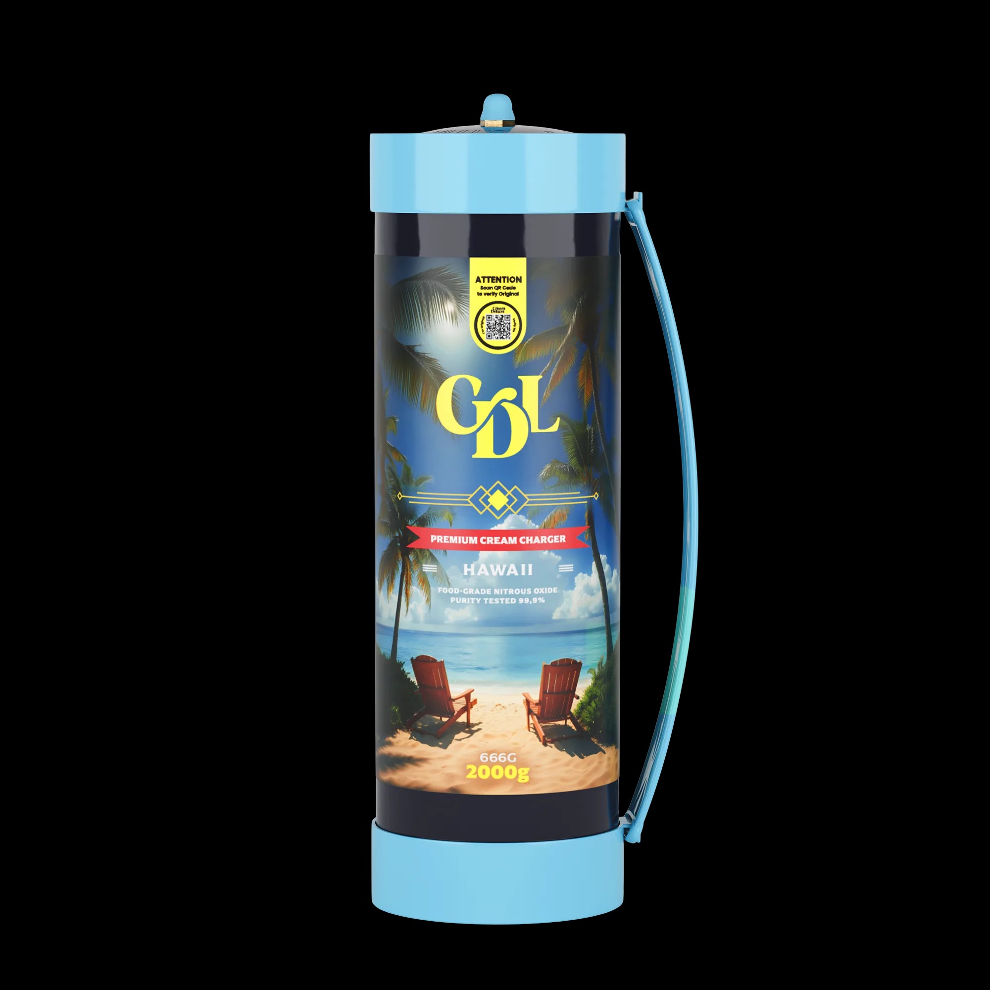 Welcome to the tropical world of innovation – the Cream Deluxe Maxxi 2000g N2O Hawaii , part of the all-new Sixth Wave Edition range. This completely updated creamer combines performance, design and an exotic taste experience that will transform any dessert or cocktail into a masterpiece.